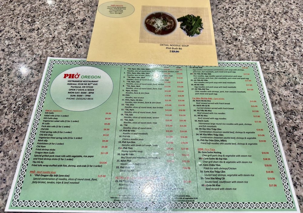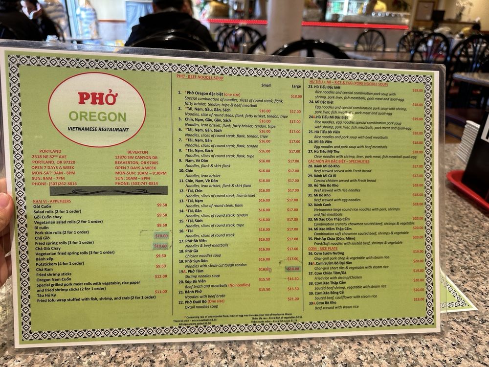 Pho Oregon Restaurant, located in Portland, offers a diverse menu of Vietnamese noodles with a focus on interactive Vietnamese fare. Known for its carefully homemade broth, the restaurant caters to both vegetarian and carnivorous visitors. With options for vegans and vegetarians, the veggie pho and fried veggie noodle dish are highly recommended. Customers praise the generous portions and authentic flavors, making it a go-to spot for comfort food. The casual ambiance with typical Asian decor enhances the dining experience. The service is quick and attentive, ensuring a pleasant dining experience. Overall, Pho Oregon Restaurant stands out for its flavorful soups, decent pricing, and consistent quality, making it a must-visit for those craving a hearty bowl of pho with a touch of Vietnamese comfort.